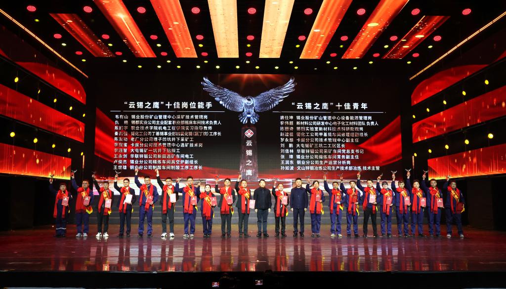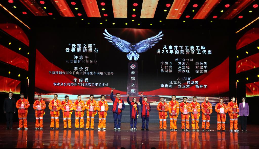 从总经理奖获奖团队,到“十佳岗位能手”“十佳青年”“云锡劳动模范”,再到默默坚守井下满30年和25年的荣誉矿工,一批批扎根岗位、勇担重任的奋斗者成为舞台的焦点,生动诠释了以奋斗者为本的价值导向,激励着全体云锡人继续鹰击长空、逐光而行。