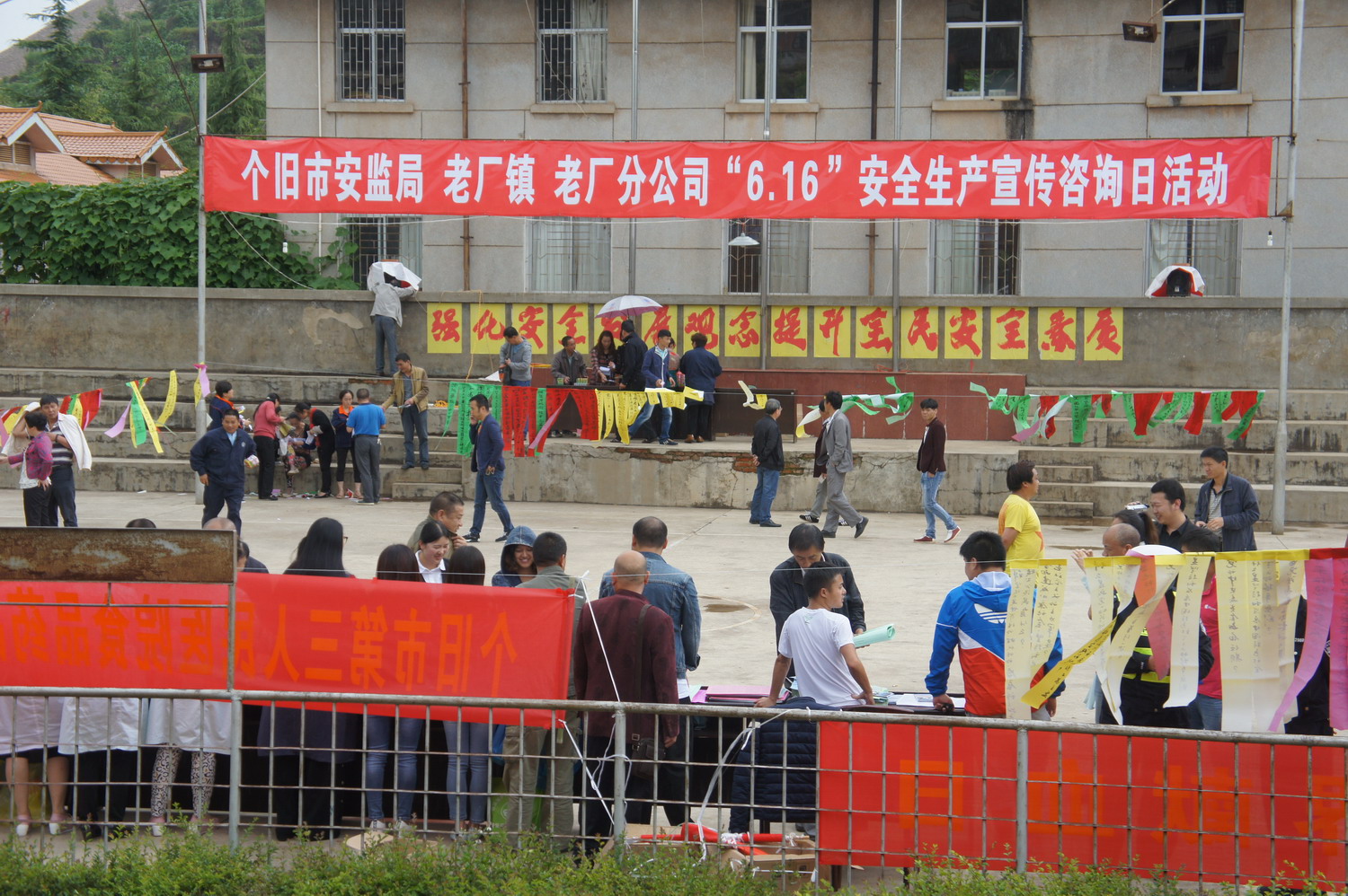 6月15日,个旧市安监局、老厂镇、老厂分公司联合在分公司球场开展“6·16”全国安全生产宣传咨询日活动。通过活动,进一步提高广大干部职工和群众的安全知识,强化安全发展观念,达到进一步提升安全素质的目的,全面营造浓厚的安全生产氛围。