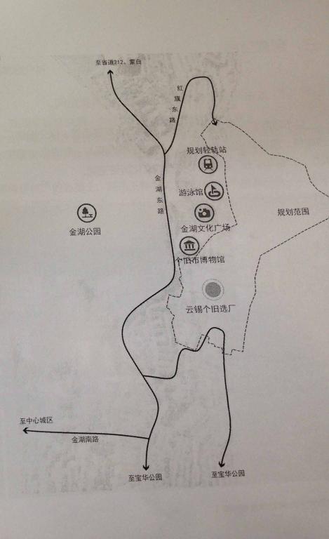 个旧选厂位于金湖东南侧,是环金湖区域重要的组织部分,加之旧选厂背靠老阴山,毗邻个蒙轻轨站(金湖广场北侧区域),其商业及景观价值不言而喻。