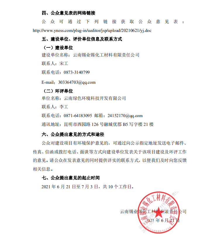 云南锡业锡化工材料有限责任公司3000吨/年氯代正丁烷投资项目环境影响评价第二次信息公示