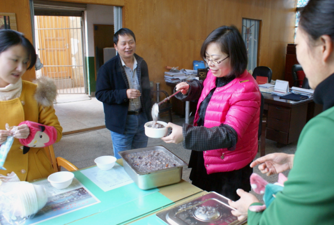 1月8日,农历腊月初八,供水公司青年志愿者们借时节开展“腊八粥香情暖冬日”活动。上午10点,四组青年志愿者分别到厂区净化站、泵站、供水第一分公司维修组、思然服务台、各分公司办公室及公司机关部门,将一碗碗亲手熬制,滚烫香浓的腊八粥伴着青年志愿者的祝福送到每一位职工手中,感谢他们一年来为公司发展做出的贡献,并祝大家工作顺利,身体健康。