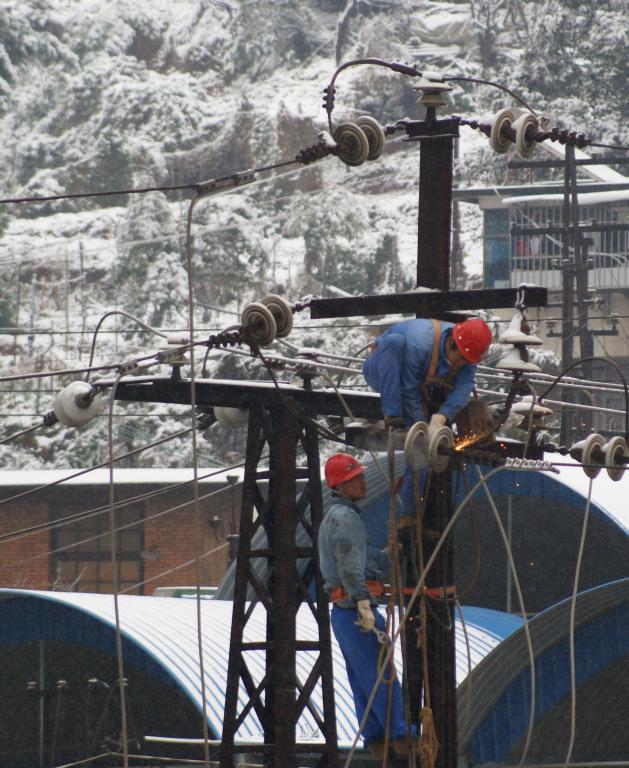 停电直接导致供水公司市区净化站、乍甸提水系统无法运行,供水公司东西村家属区,机关和马矿片区及周边部分社区停电。针对市区净化站、乍甸提水系统无法运行,供水公司积极协调白云沟、坝堵寨水源组织生产,增加新冠、技校两个净水站的供水量,全力确保云锡冶炼厂生产,医院、学校等重点单位及居民生活用水的正常供给。与此同时受损线路抢修也风雪中展开,抢修人员不顾雨雪登杆接线,密密麻麻的雨雪打湿了全身,风雪中蓝色的工作服和红色的安全帽分外显眼。