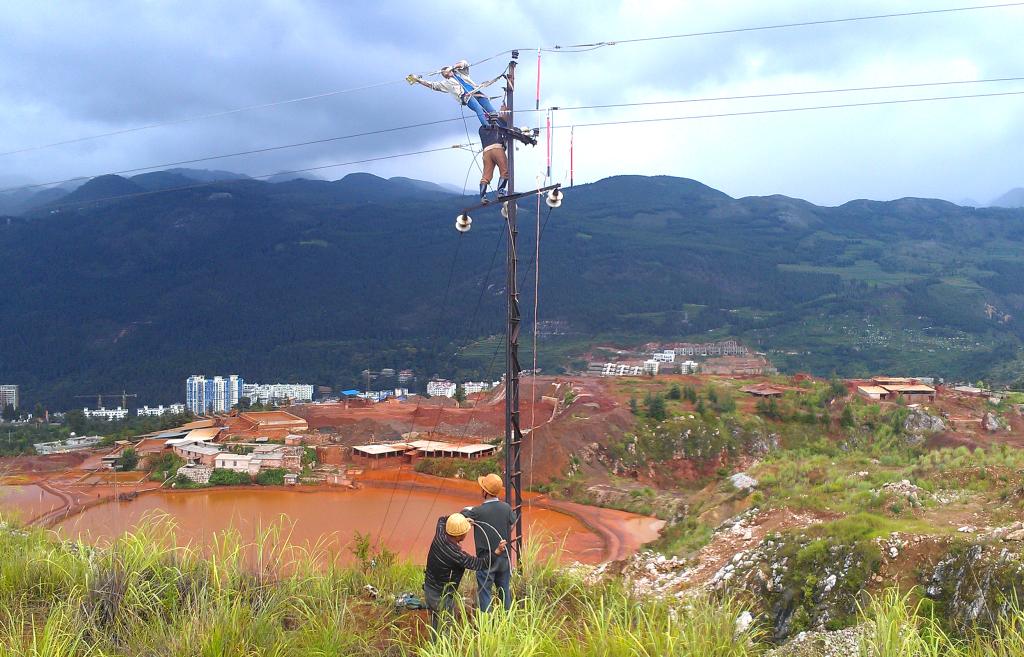 储运物调中心27日下午5点接到通知后,用电管理人员立刻进行前期供电安全处理,对支线进行全线巡查。但由于持续降雨和天色渐暗,故障查找受阻。28日一早,储运物调职工便冒着暴雨,再次对138云锡支线进行全线巡查,查找故障点,发现138云锡铜选支线有5处导线断裂、2个高压针式瓷瓶被雷电击穿,恢复供电抢修工作难度大。