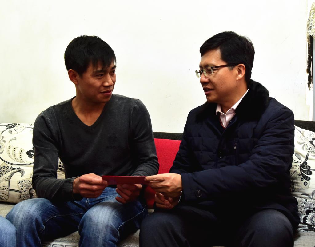 1月12日,控股公司党委书记、董事长张涛到金盆家园慰问机械公司困难职工程冀勇。