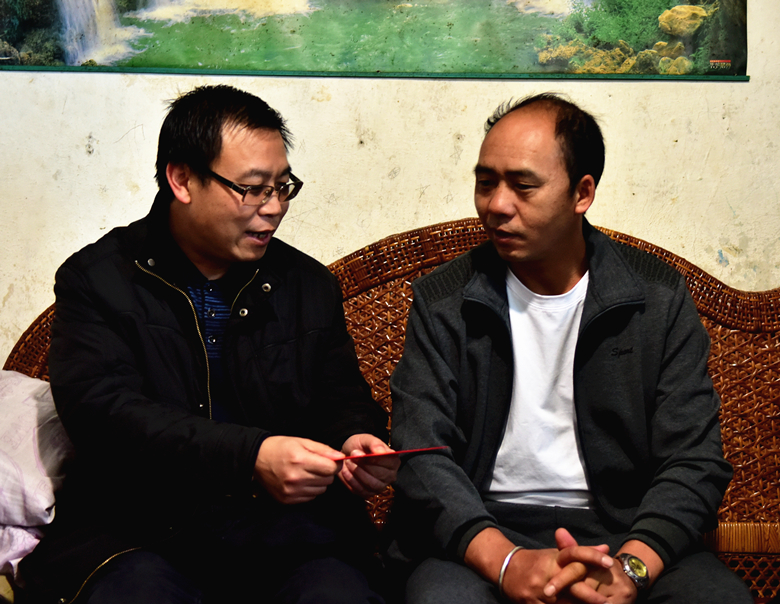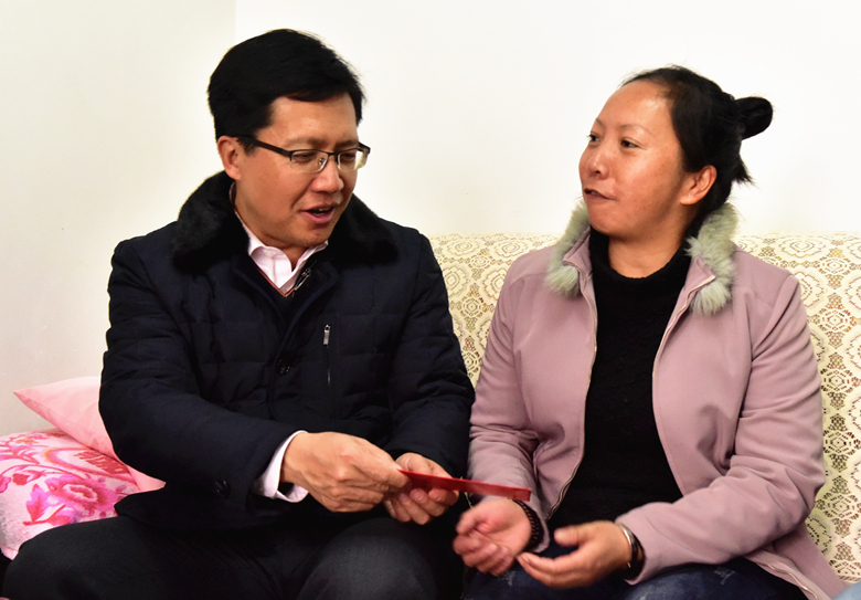 1月12日,控股公司党委副书记姚家立到德政家园慰问云锡产业园困难职工杨孟斗 。