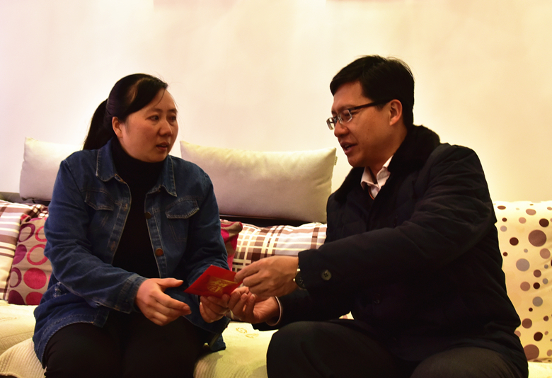 每到一户,领导们与职工促膝交谈,详细了解其家庭情况、身体状况,子女情况,工作实际困难等。同时,领导们向每一户困难职工、困难党员、离休干部家庭送上慰问金和慰问品,衷心祝福大家新春快乐、身体健康、万事如意、阖家幸福。
