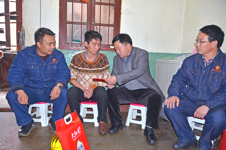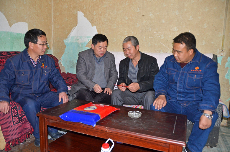 1月12日,控股公司党委常委、副总经理刘凡云到卡房分公司慰问东瓜林坑困难职工朱煜林。