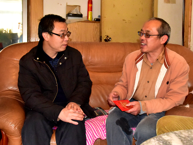 1月12日,控股公司党委常委、副总经理刘凡云到金湖西路44号慰问老厂分公司困难党员陈春宏。 (彭鑫摄)