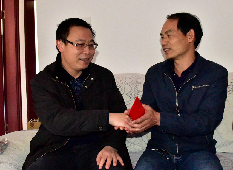 1月11日,控股公司党委常委、工会主席汤发到机械公司慰问困难党员杨玉成。 ( 杨建国摄)