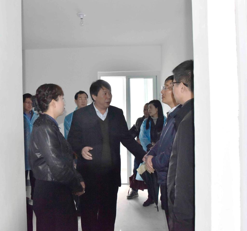 参加仪式的领导参观了新分的住房。