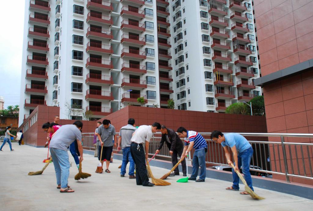 活动当天,天空时而下起纷纷小雨,时而烈日炎炎,党员团员们争先恐后,纷纷拿起清洁工具拾捡、清扫,认真清理金湖明珠小区内外环境卫生。经过两个多小时的辛勤劳动,小区内花园、排水沟、道路及楼房墙壁等被一一清扫干净,小区显得更加整洁美观,吸引了众多客户前来看房。劳动之余,大家还耐心地向前来看房的客户介绍金湖明珠和水榭嘉园住房的优良品质及优雅宜人的居住环境。大家热情周到的服务态度赢得了客户的一致称赞,有效促销。