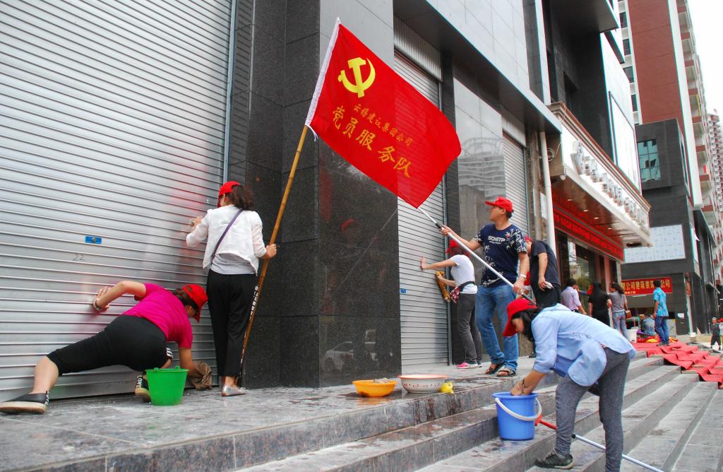 7月23日,建设集团公司党委组织部分党员团员到金湖明珠小区开展义务劳动,对小区内外环境卫生进行清理,践行“两学一做”服务生产,助力减亏增盈。