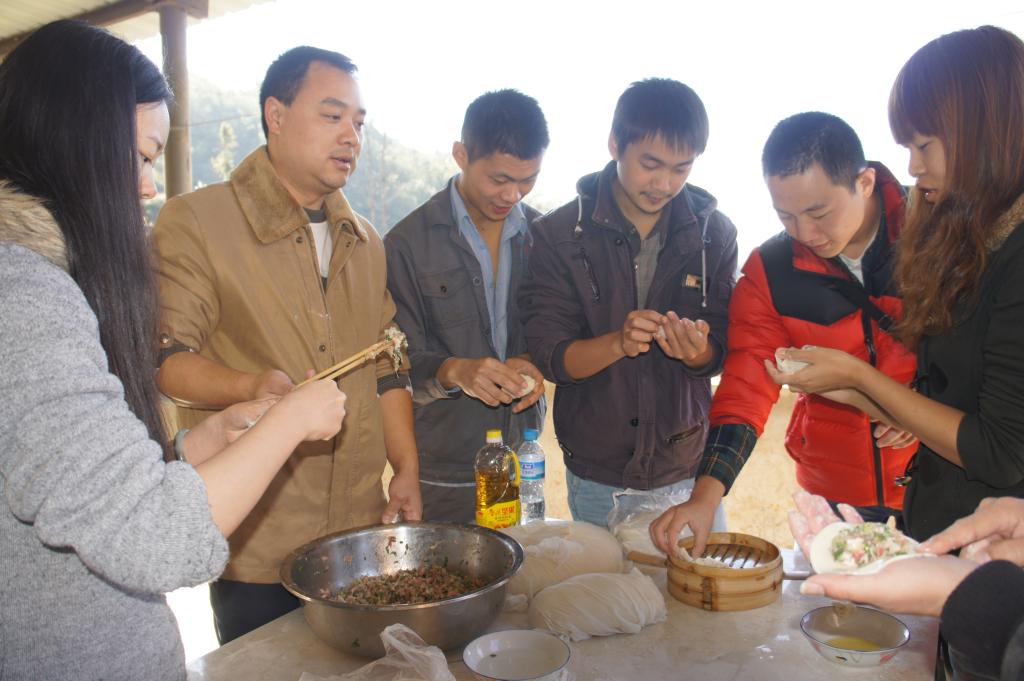 上午9点,在龙树脚坑食堂,参加此次活动的20余名团员青年分工配合,和面、切面、擀面片、包饺子,一个个干得热火朝天,不亦乐乎。经过两个多小时的劳动,共包出1200多个饺子。虽然饺子有大有小形状各异,还有的因为密封不严下水后就煮开了皮,但是看到刚刚出坑来的师傅们吃着自己亲手包的热腾腾的饺子,大家的心里充满了团队合作的快乐和服务他人的幸福感。