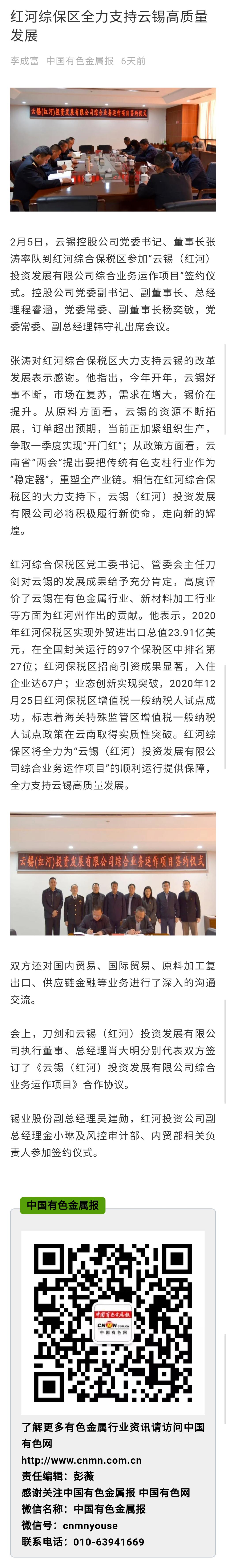 中国有色金属报:红河综保区全力支持云锡高质量发展