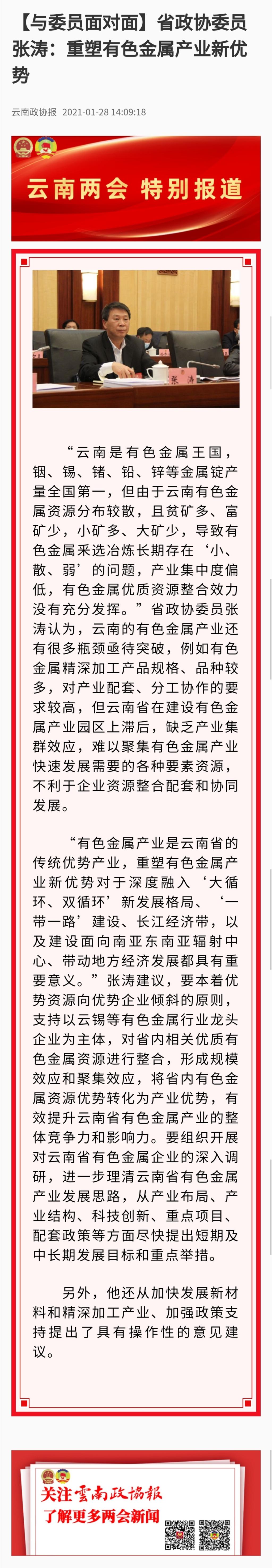 【与委员面对面】省政协委员张涛:重塑有色金属产业新优势