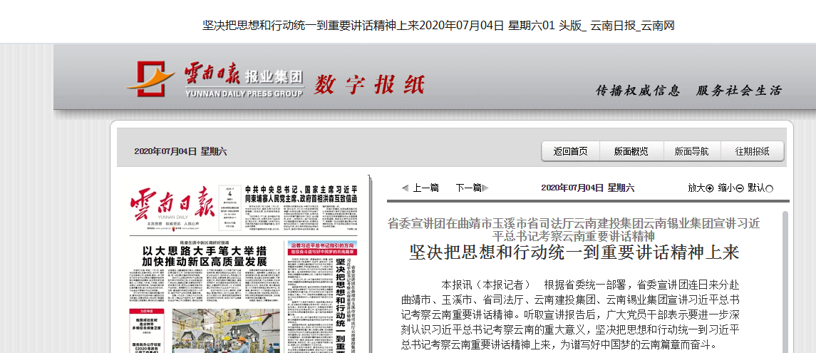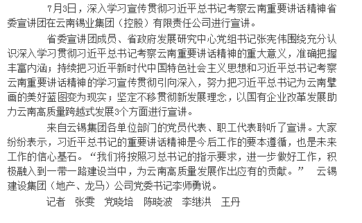 7月3日,深入学习宣传贯彻习近平总书记考察云南重要讲话精神省委宣讲团在云南锡业集团(控股)有限责任公司进行宣讲。