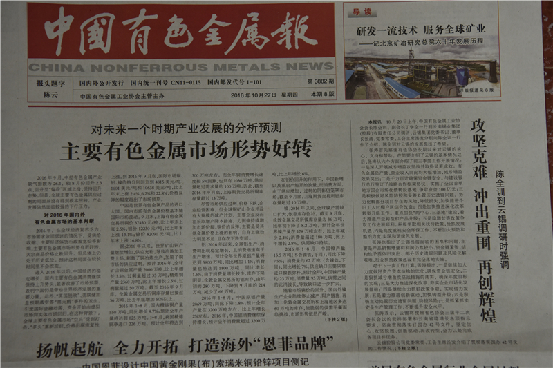 | 本报讯 10月20日上午,中国有色金属工业协会会长陈全训、副会长丁学全一行到云南锡业集团(控股)有限责任公司调研,云锡集团党委书记、董事长张涛,党委常委、工会主席汤发分别向陈全训一行作了介绍。陈全训对云锡的发展提出了希望。 张涛首先感谢有色协会长期以来对云锡的关心、支持和帮助。在简要介绍了云锡的基本情况之后,张涛从六个方面介绍了前三季度工作开展情况:一是深入开展减亏增盈攻坚战并取得显著成效。有色金属总产量、营业收入同比均大幅增加,减亏增盈效果突出;二是千方百计确保资金链安全。与建设银行总行签订了战略合作框架协议,实施了全国首单地方国企市场化债转股落地,争取资金100亿元;三是积极做好风险防控和妥善处置历史遗留问题。努力化解部分项目存在的风险,降低损失,加快推进个旧工人村棚户区综合改造;四是加快推进深化改革转型升级工作。重点加快“两中心、三基地”建设,着力推进产业转型和产品升级;五是稳增长等政策争取工作进展顺利。积极争取相关扶持政策,抢抓发展机遇;六是高度重视安全环保工作。不断加大预防和整治力度,实现和谐绿色发展。 张涛也指出了云锡当前面临的困难和问题,主要是产品销售增量和利润仍然较小、资金链紧张、结构性矛盾依旧突出、部分历史遗留问题及风险化解艰难、行业扶持政策还没有完全落地实施。 对于下一步工作打算,张涛提出,一是继续加大力度做好资产资本结构的优化,确保资金链安全;二是狠抓减亏增盈攻坚战措施的落实,确保年度目标的实现;三是大力推进深化改革,夯实企业市场化发展基础;四是继续全力抓好政策争取,实现借力发展;五是着力推进创新驱动,加快转型升级;六是积极主动处置历史遗留问题,防控风险;七是抓紧抓实安全生产管理工作,不断提升安全水平。 张涛表示,云锡将按照有色协会三届十二次会长会议的安排部署和云南省稳增长各项指示要求,坚决贯彻落实好国办42号文件,坚定信心、攻坚脱困、创新驱动、深改转型,全力以赴完成各项目标任务。 云锡控股公司党委常委、工会主席汤发介绍了贯彻落实国办42号文的工作情况,并就关于帮助协调有关部门将锡业股份列入符合工信部《铜冶炼行业规范条件》企业目录、开展铜精矿加工贸易业务等七个方面的事宜,恳请有色协会帮助协调国家有关部委、云南省相关部门等给予政策支持、税费减免或资金支持等,希望在有色协会的指导和帮助下,进一步加强与政策对口部委的沟通联系,积极反映云锡的诉求,力争各项政策早日落地,云锡将抓紧做好政策落地后的操作流程和程序研究工作,让政策的红利早日惠及云锡。 听取了工作汇报后,陈全训指出,你们提到的42号文件政策的争取,协会十分重视,将给予大力支持。有色协会就是要为企业服务,你们的有些请求事项涉及有关部委,需要花大力气落实,你们提的这些问题我们是可以支持的。回去后有色协会要把这些问题分解,分送给有关部门,请求帮助解决。但工作的主体还是云锡,你们要积极反映、沟通和交流。对于有关政策能争取多少算多少,国家的政策不是一两天就能争取到的,比如收储这件事,到现在还没有真正落实,要持之以恒。 陈全训强调,听了你们的情况汇报,给我的感觉是,云锡虽然目前遇到了一些暂时的困难,但志气没有灭,精神没有倒。特别是张涛同志来到云锡之后,整个班子的精神状态很好,工作非常努力。云锡提出“三年打基础,五年大翻身,十年创辉煌”的目标,我认为这是符合云锡实际的,完全能够做到。你们现在遇到的困难无非是历史、市场等原因造成的,这些困难是完全能够克服的。希望公司领导班子精诚团结,在以张涛为核心的领导班子的带领下,有国家42号文的指引、中央各部委的支持和云南省委省政府的正确领导,云锡的奋斗目标完全能够实现。我相信市场一定会逐渐向好,云锡也一定能打好翻身仗,我对此很有信心。比如你们实施的债转股,现在就实现了成功落地,解决了很多的问题。 陈全训最后指出,有色协会对云锡的工作、对以张涛为班长的云锡班子的工作是充分肯定的,希望公司领导班子团结带领28000多名干部职工,攻坚克难、冲出重围、再创辉煌。 (吴言 杨雪峰 杨建国) |