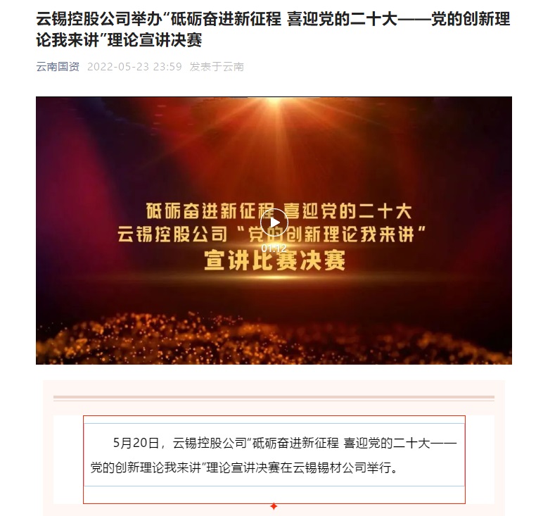 云南国资、文旅头条:云锡控股公司举办“砥砺奋进新征程 喜迎党的二十大——党的创新理论我来讲”理论宣讲决赛