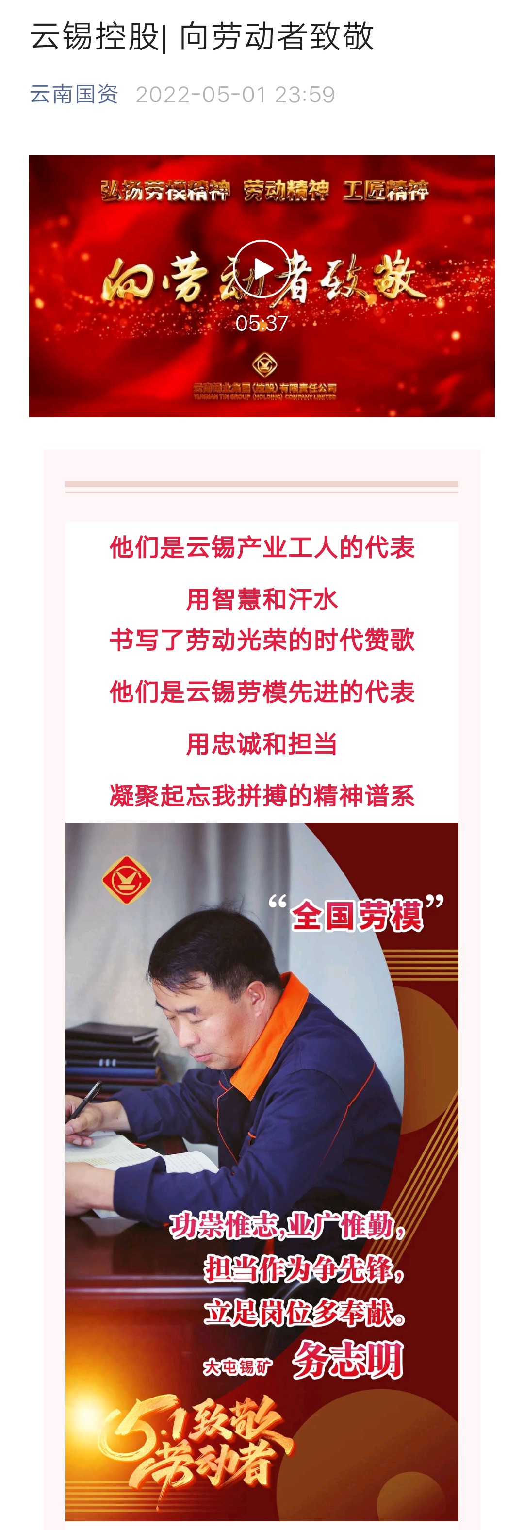 下一条:云南新闻联播:今年一季度云锡集团生产经营达历史最好水平