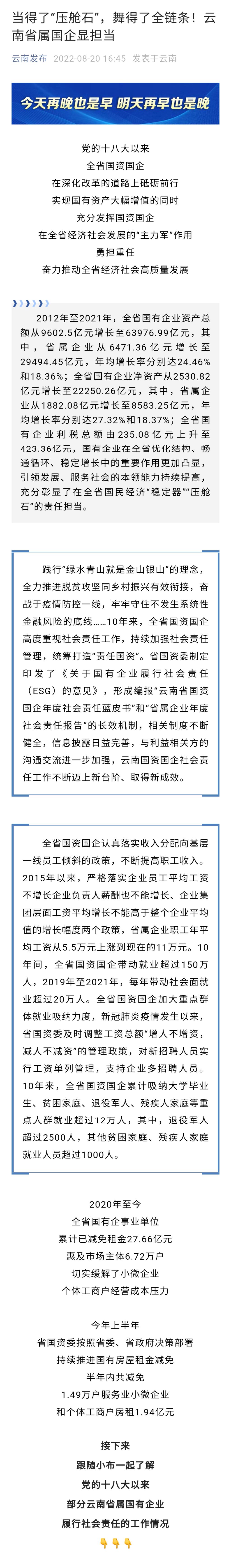 云南发布:当得了“压舱石”,舞得了全链条!云南省属国企显担当