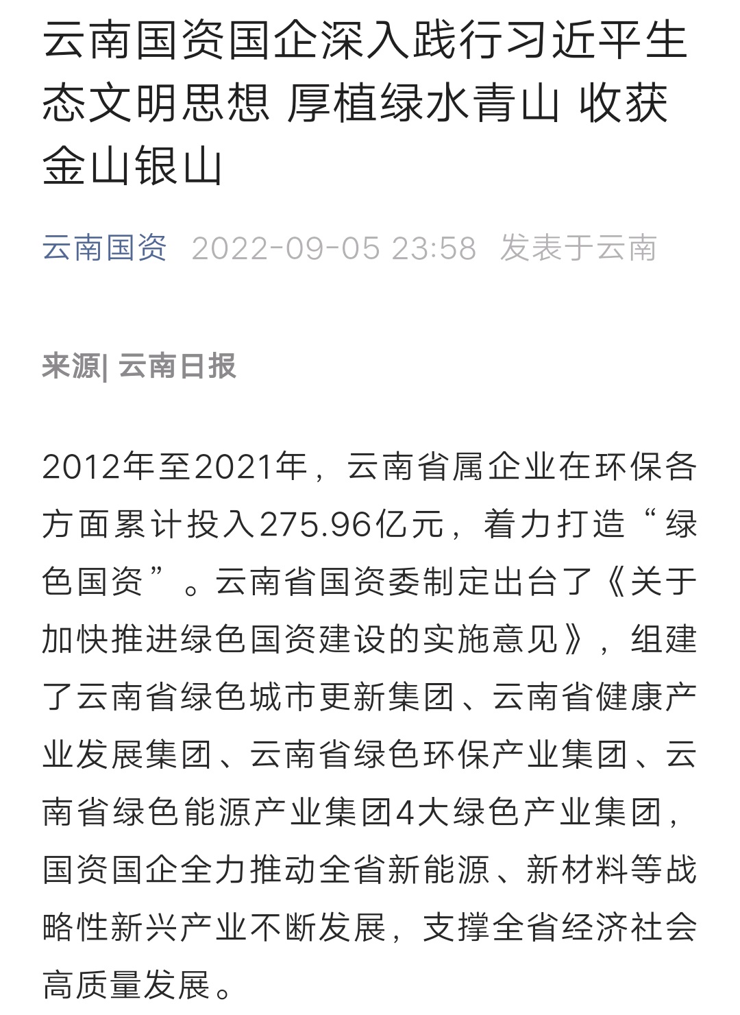 云南日报:云南国资国企深入践行习近平生态文明思想 厚植绿水青山 收获金山银山
