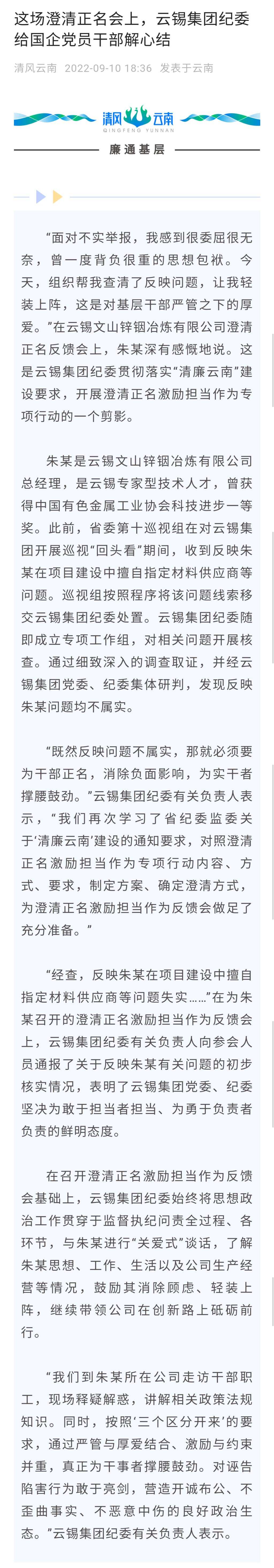清风云南:这场澄清正名会上,云锡集团纪委给国企党员干部解心结