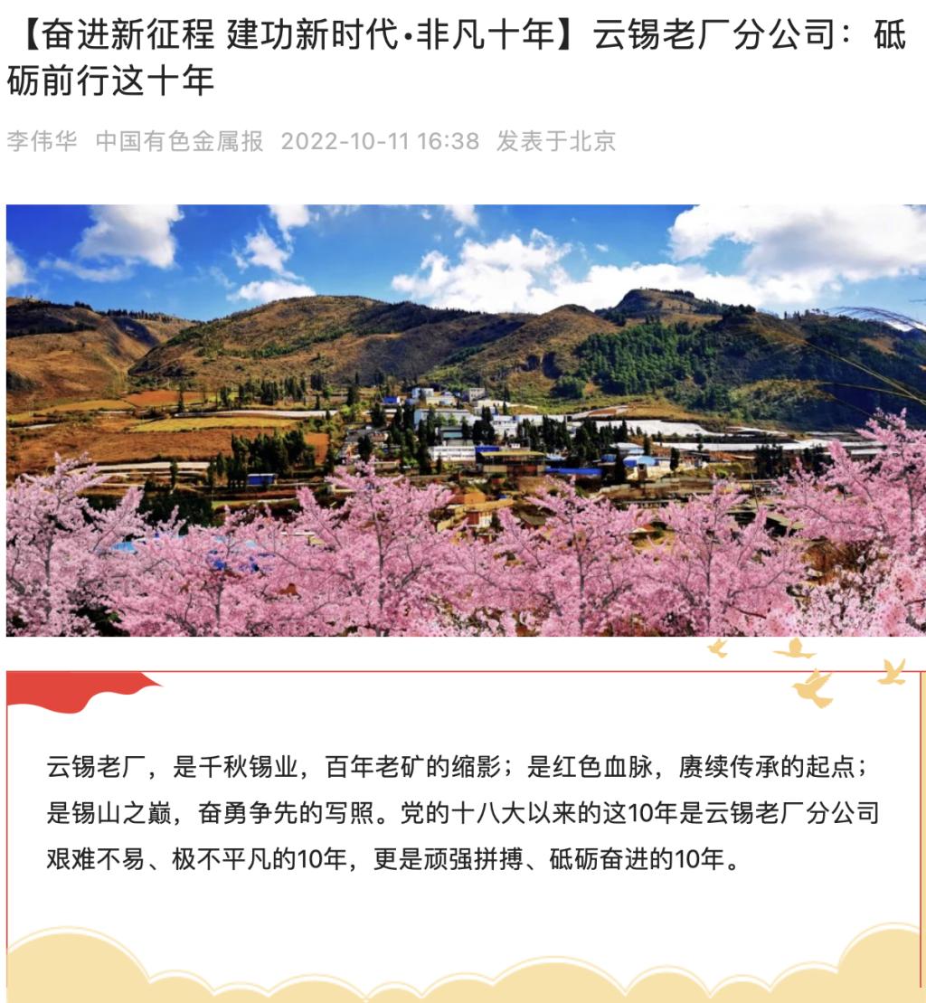 中国有色金属报、有色新闻、文旅头条:【喜迎二十大】云锡老厂分公司:砥砺前行这十年
