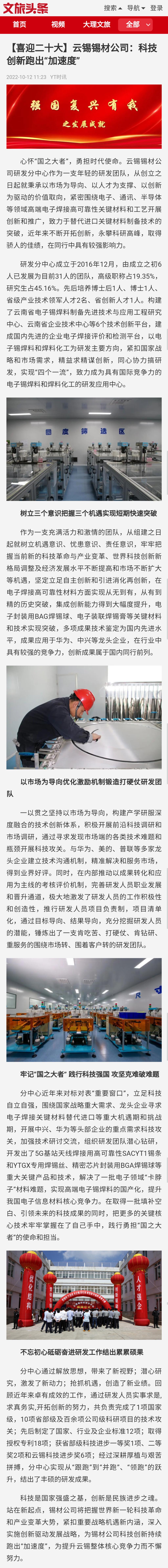 文旅头条:喜迎二十大】云锡锡材公司:科技创新跑出“加速度”