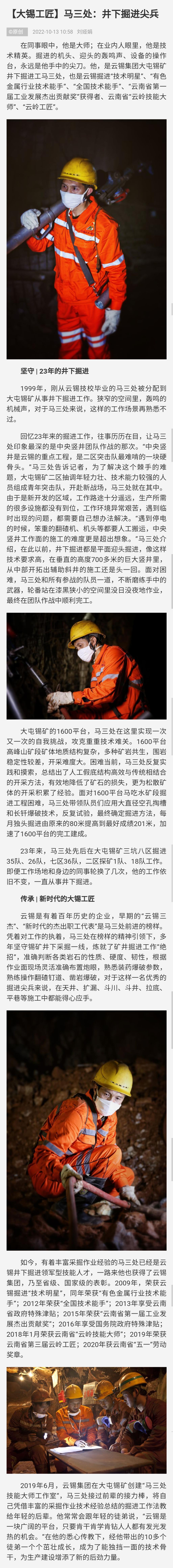 文旅头条:【大锡工匠】马三处:井下掘进尖兵