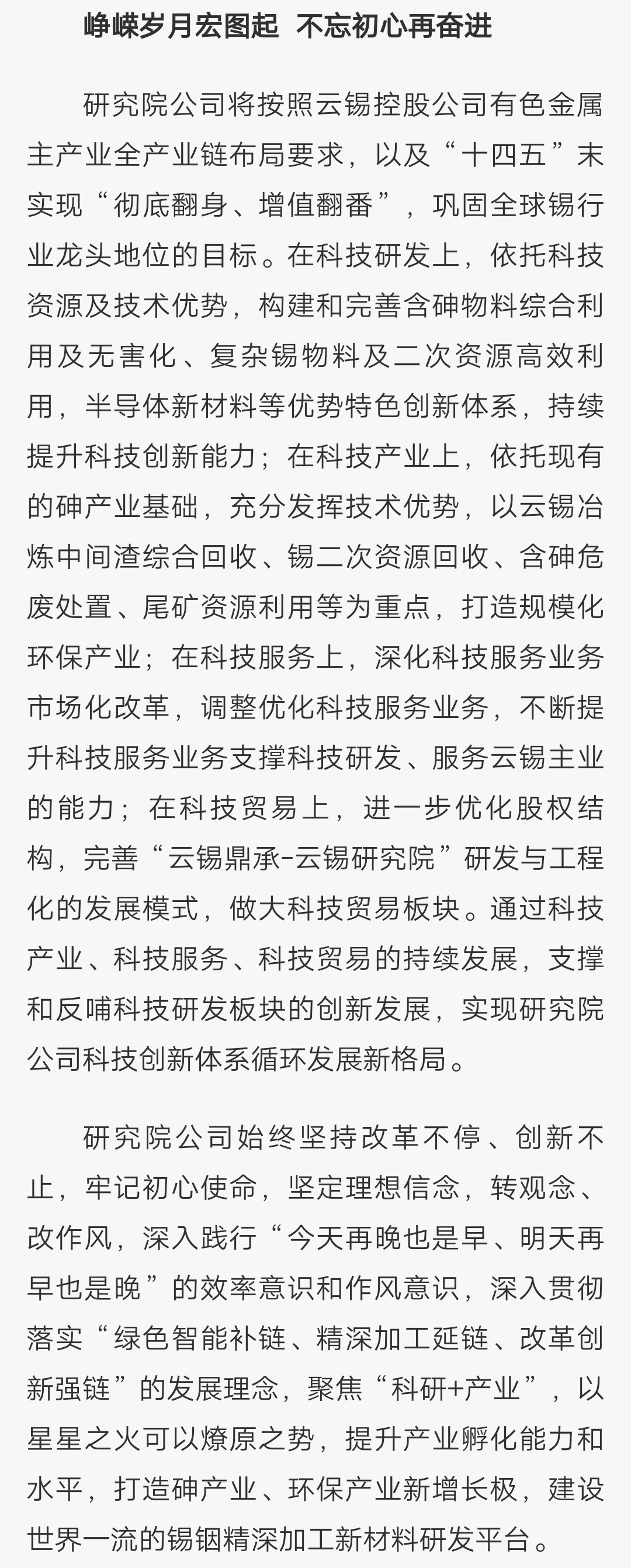 文旅头条:云锡研究院公司:踔厉奋发这十年