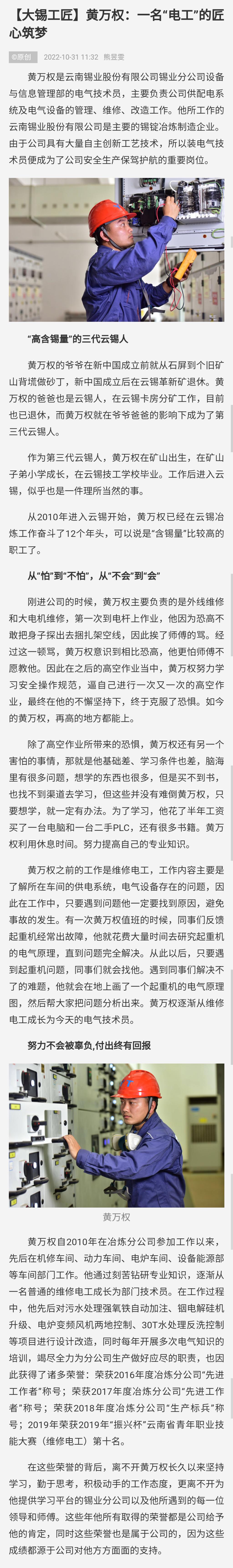 文旅头条:【大锡工匠】黄万权:一名“电工”的匠心筑梦