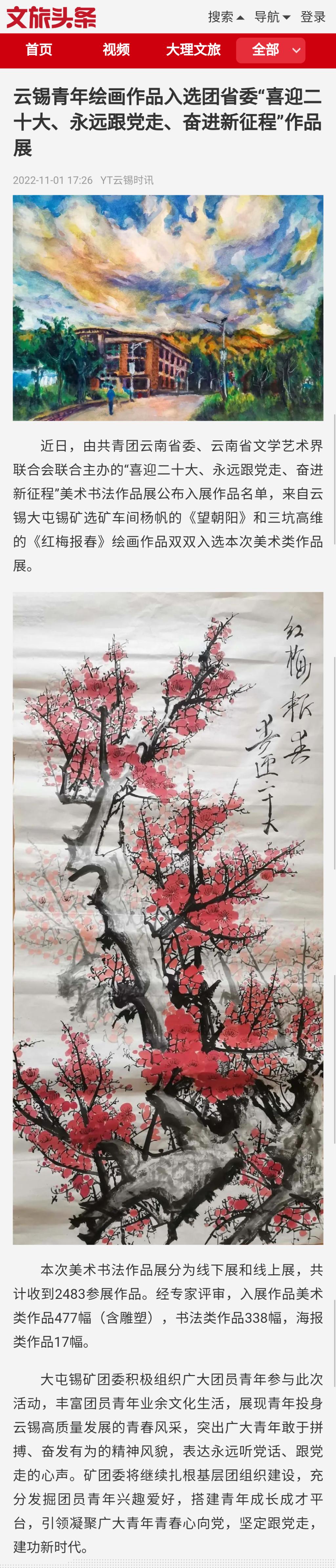 文旅头条:云锡青年绘画作品入选团省委“喜迎二十大、永远跟党走、奋进新征程”作品展