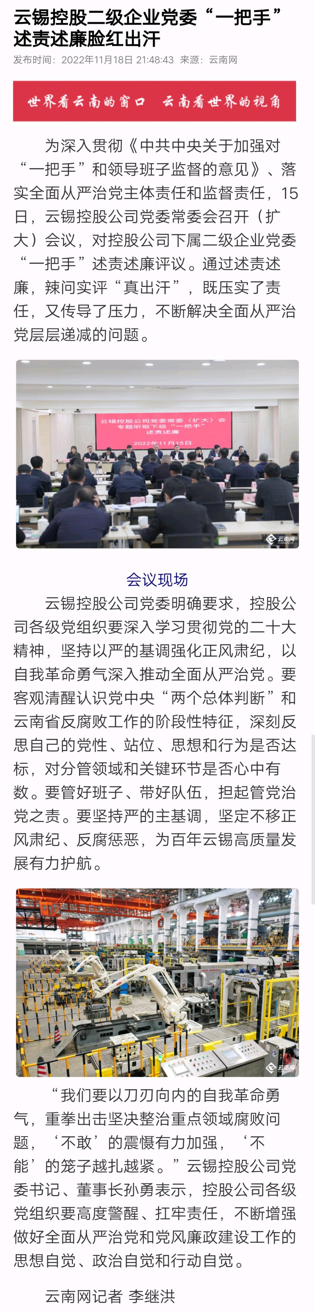 云南网:云锡控股二级企业党委“一把手”述责述廉脸红出汗