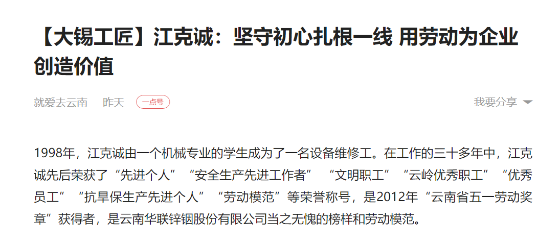 网易、一点资讯、百度、文旅头条:【大锡工匠】江克诚:坚守初心扎根一线 用劳动为企业创造价值