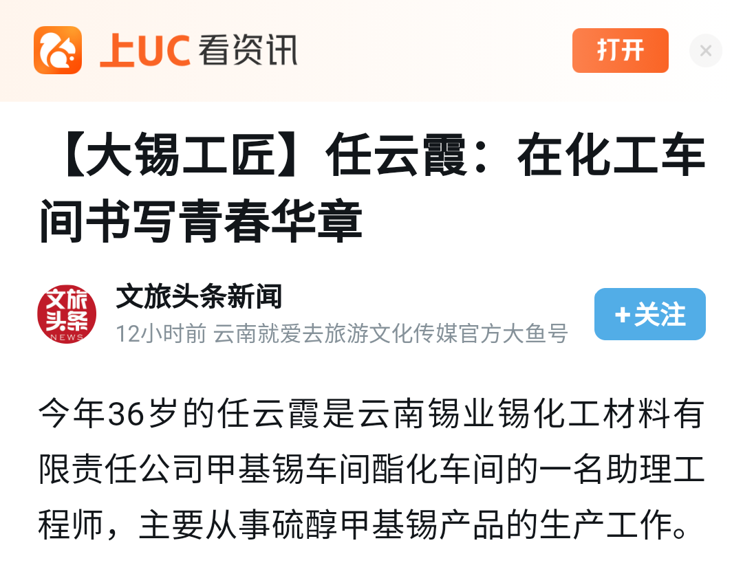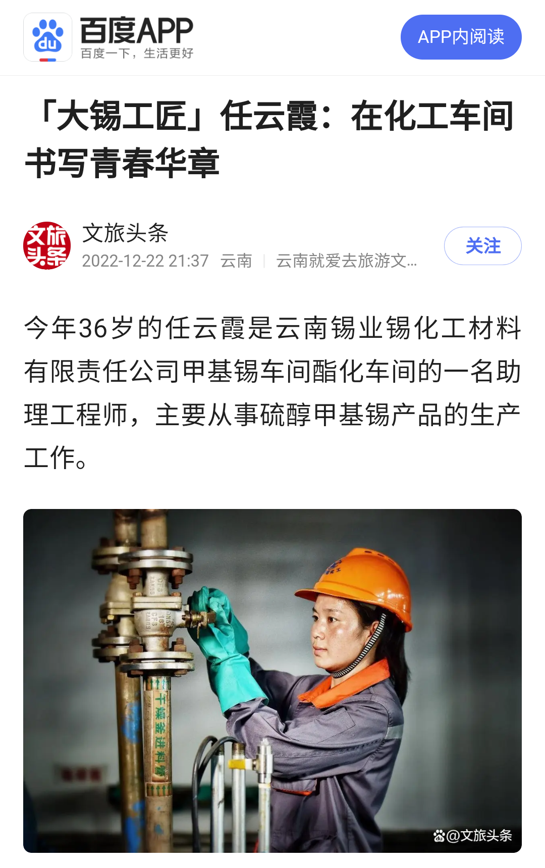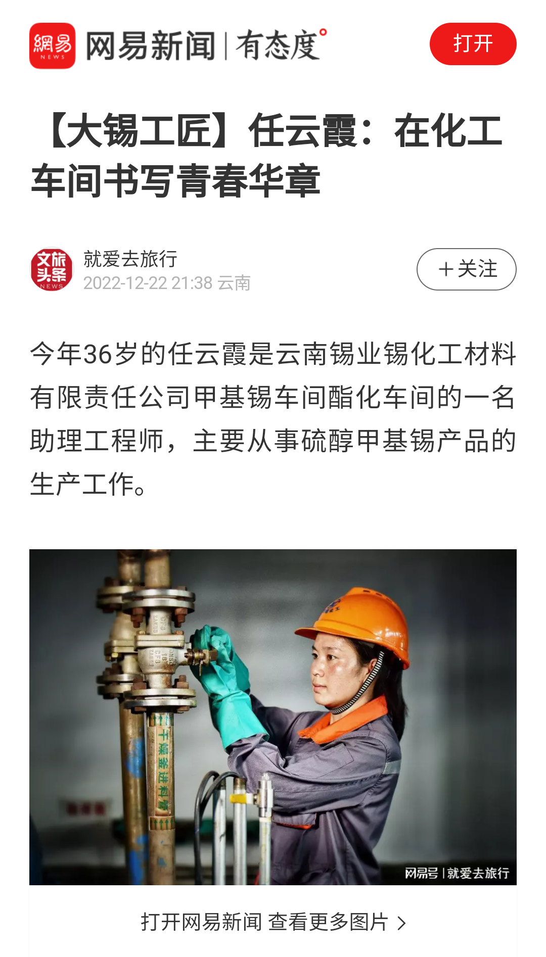 百度、搜狐、网易、阿里文娱、今日头条、文旅头条:【大锡工匠】任云霞:在化工车间书写青春华章
