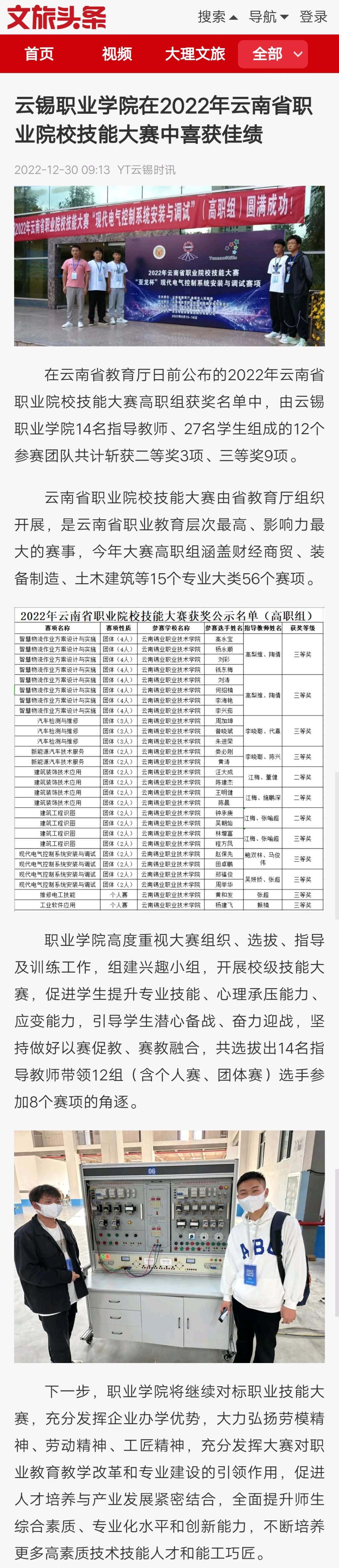 文旅头条:云锡职业学院在2022年云南省职业院校技能大赛中喜获佳绩