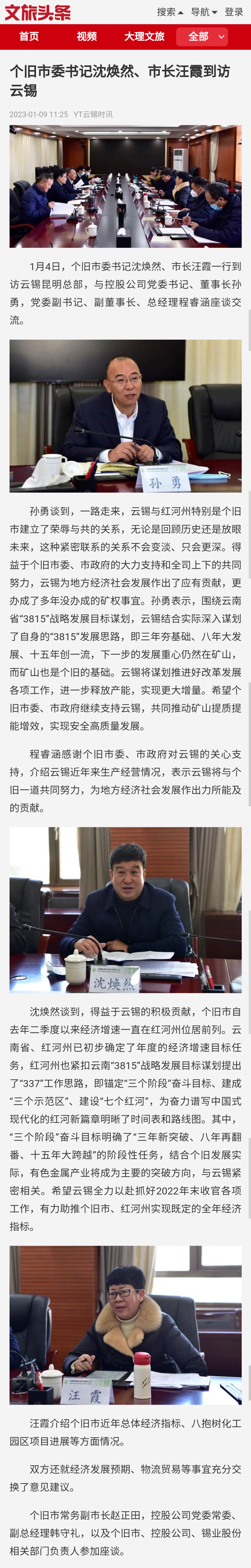 文旅头条:个旧市委书记沈焕然、市长汪霞到访云锡