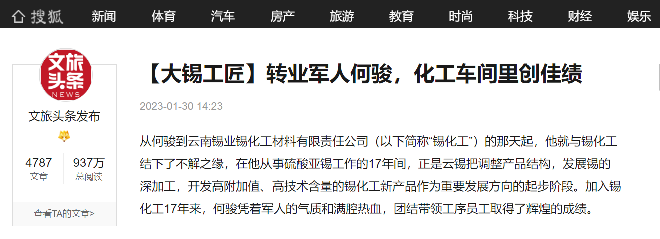 人民日报客户端、今日头条、搜狐、一点资讯、阿里文娱、文旅头条:【大锡工匠】转业军人何骏,化工车间里创佳绩