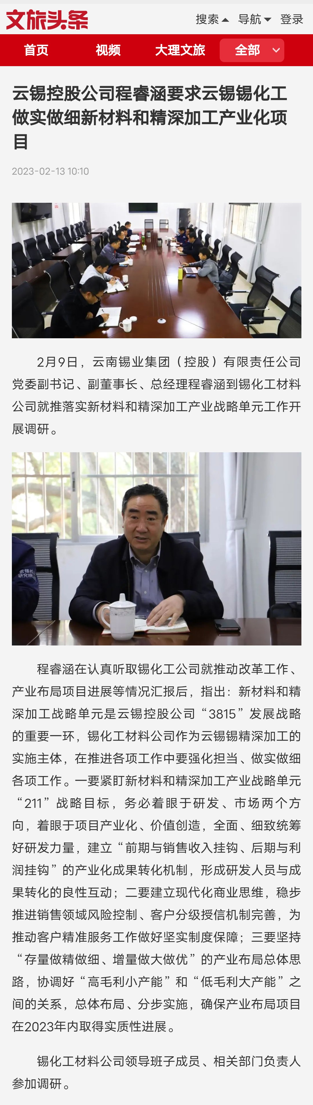 文旅头条:云锡控股公司程睿涵要求云锡锡化工做实做细新材料和精深加工产业化项目