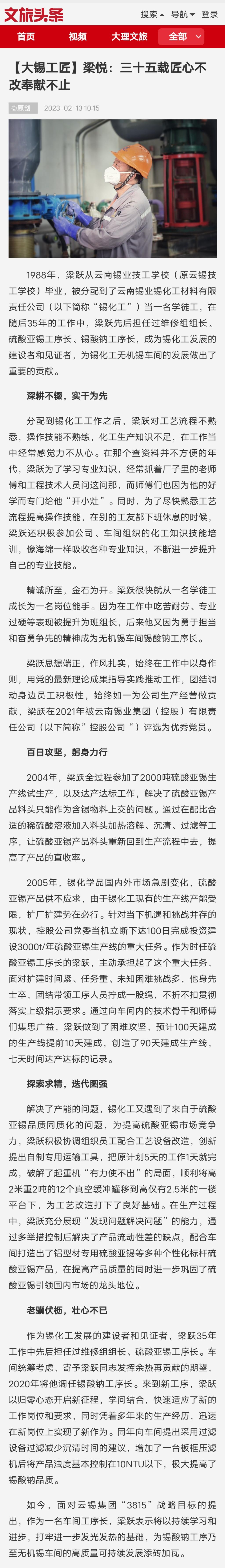 百度、网易、今日头条、搜狐号、一点资讯、文旅头条:【大锡工匠】梁悦:三十五载匠心不改奉献不止