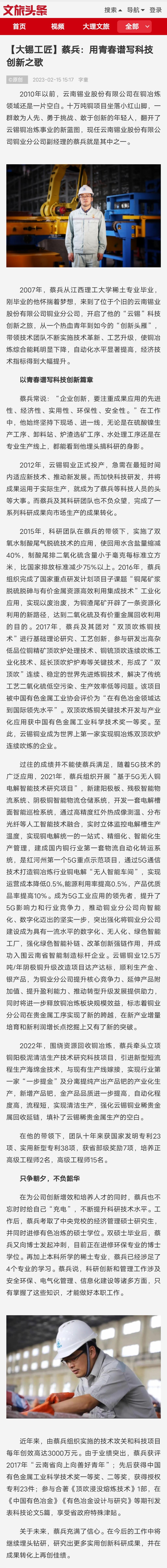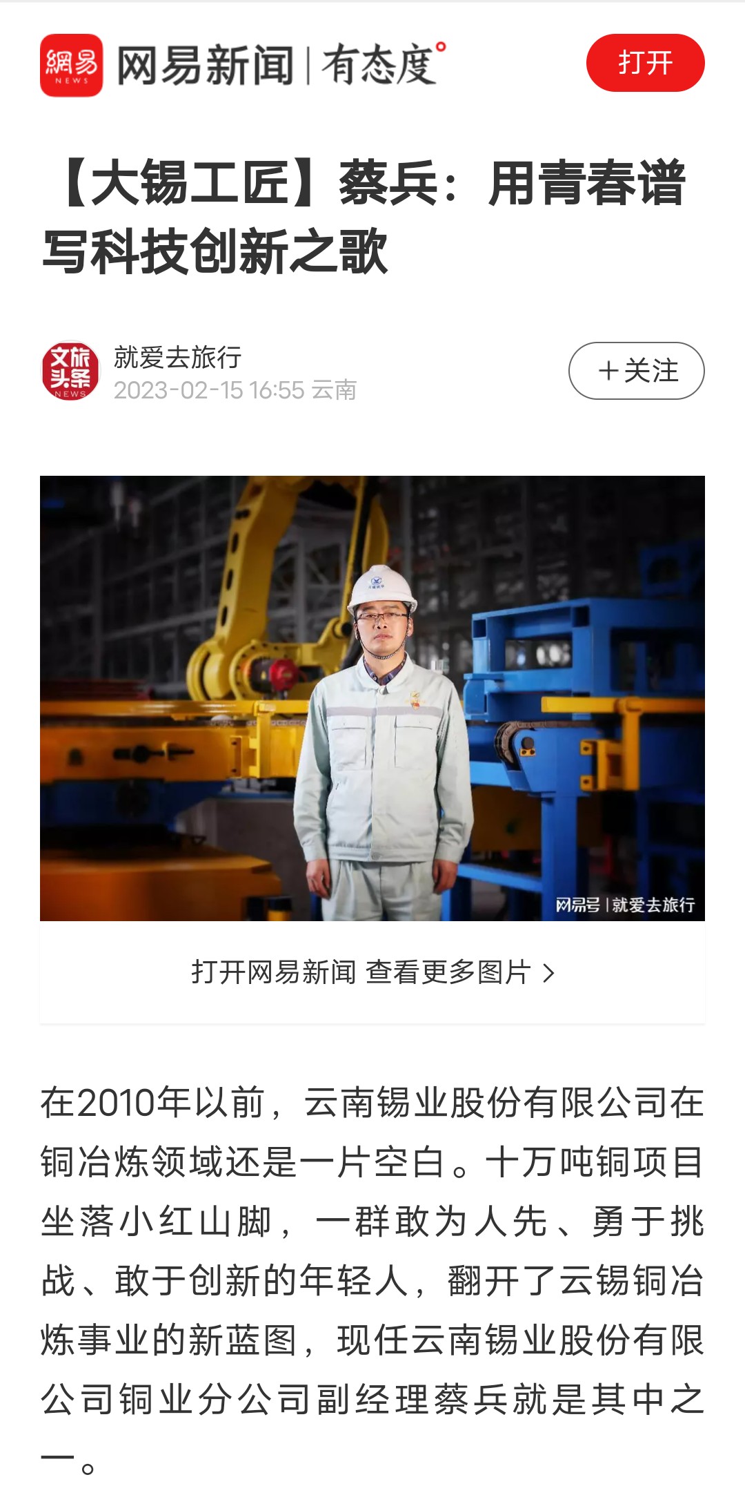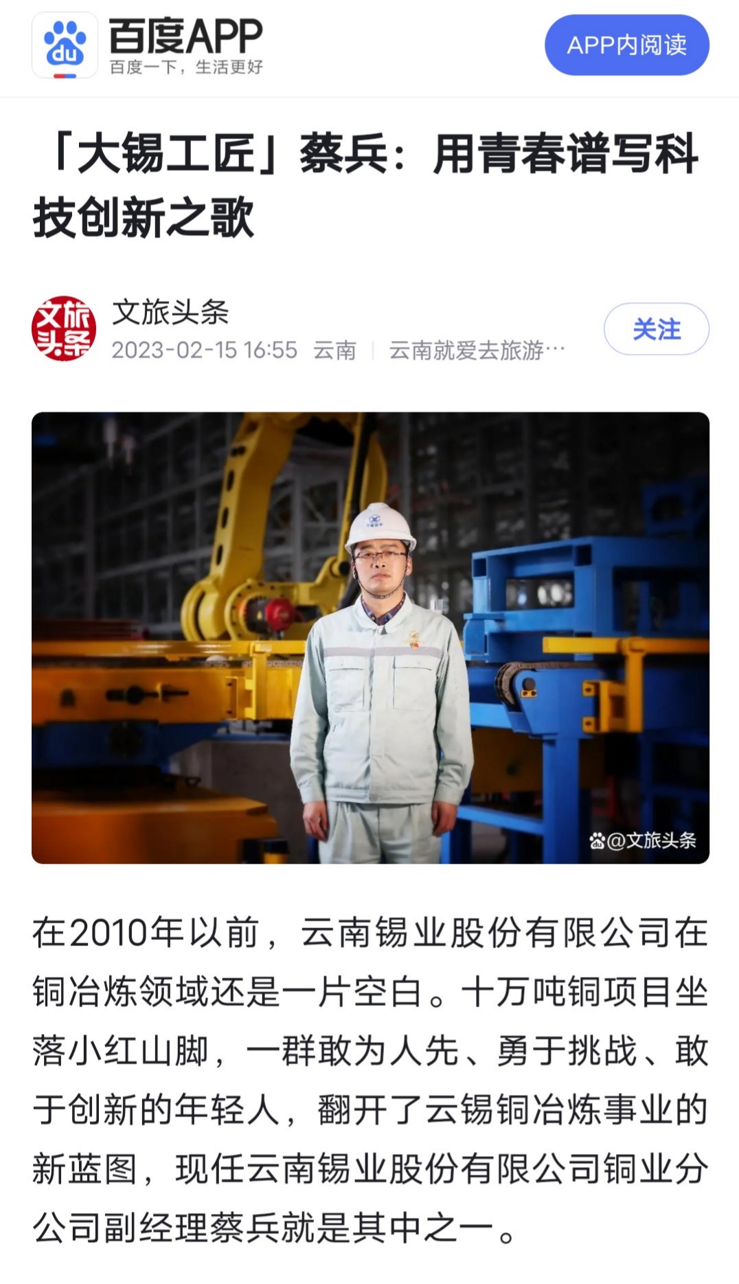 百度、网易、今日头条、搜狐、一点资讯、文旅头条:【大锡工匠】蔡兵:用青春谱写科技创新之歌