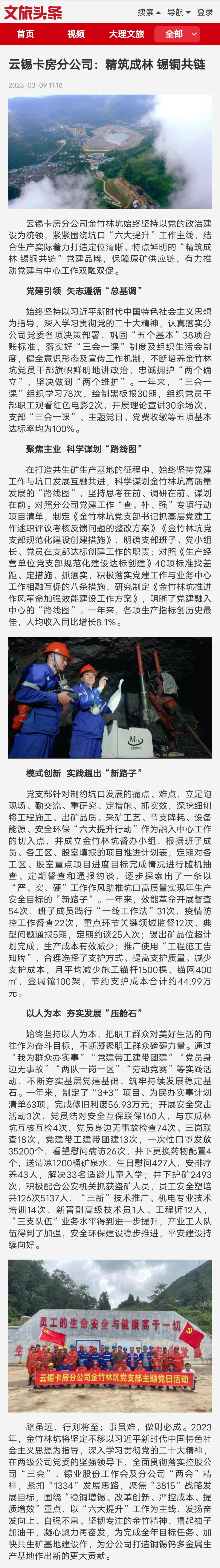 文旅头条:云锡卡房分公司:精筑成林 锡铜共链