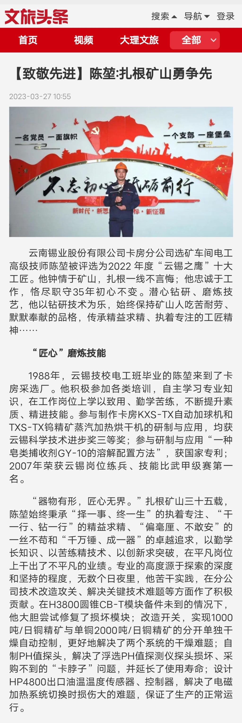 学习强国、文旅头条:【致敬先进】陈堃:扎根矿山勇争先