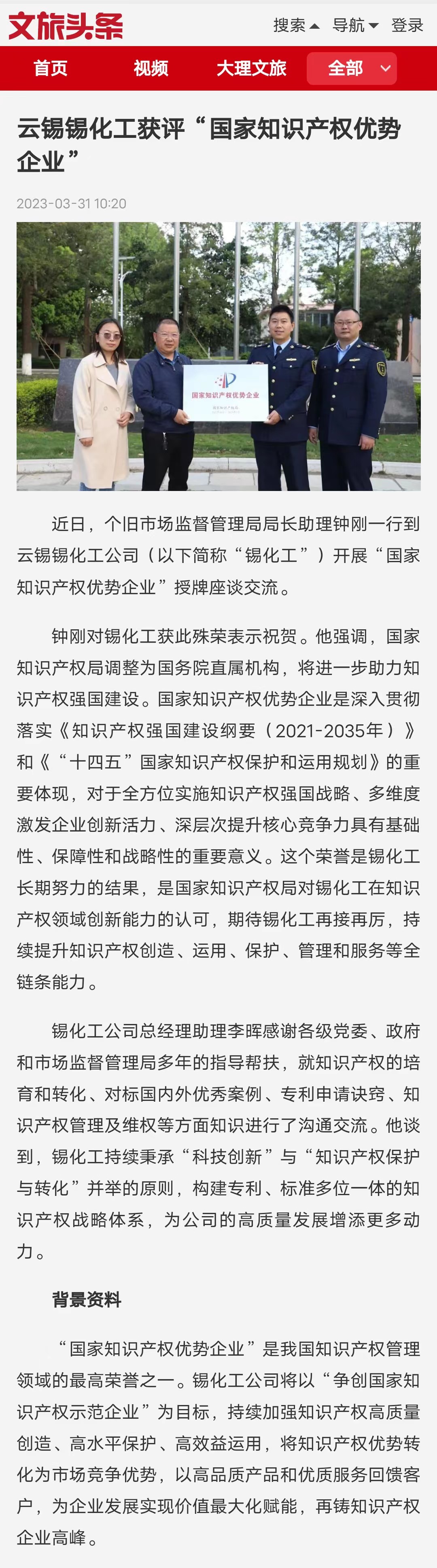 文旅头条:云锡锡化工获评“国家知识产权优势企业”