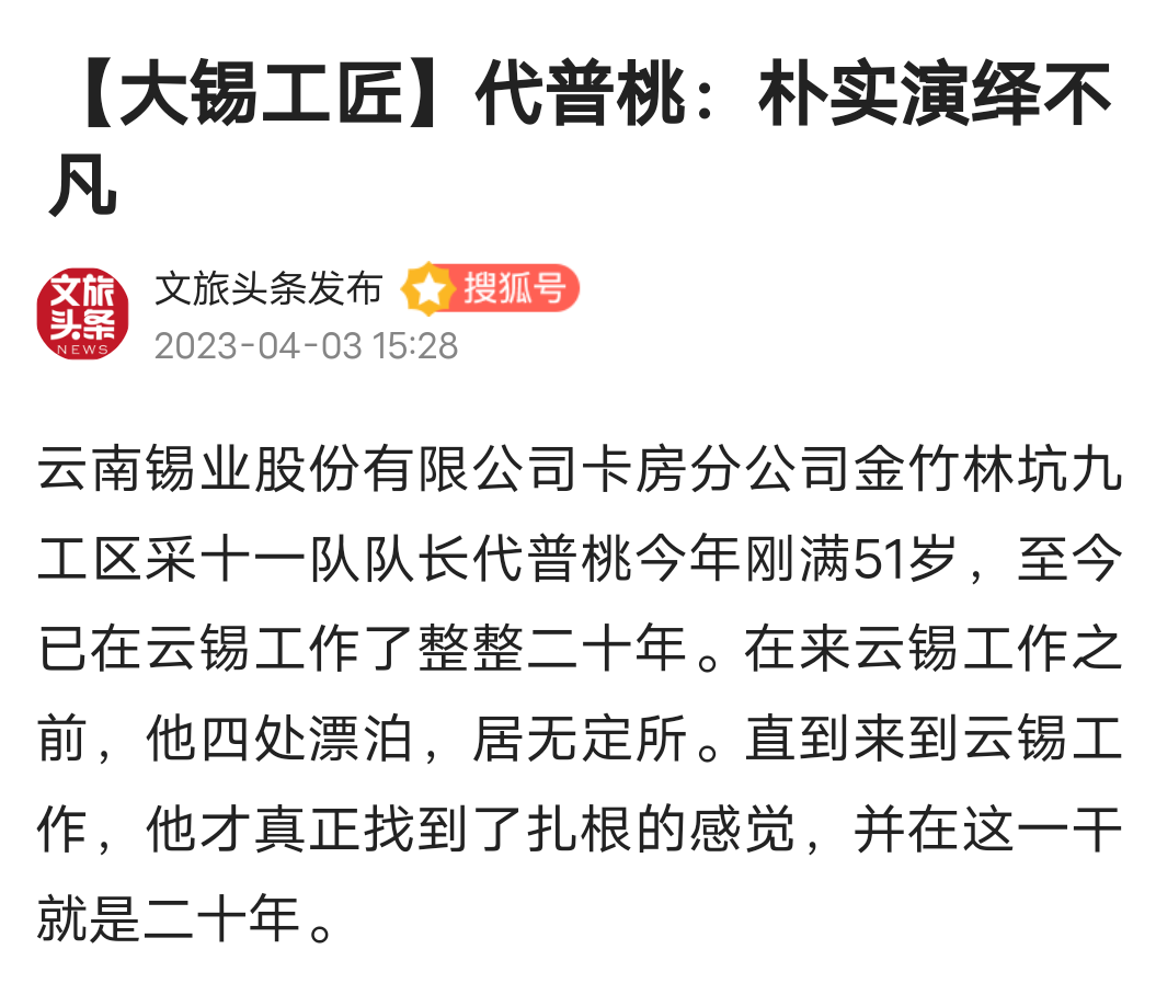 百度、搜狐、大鱼号、新浪、文旅头条:【大锡工匠】代普桃:朴实演绎不凡