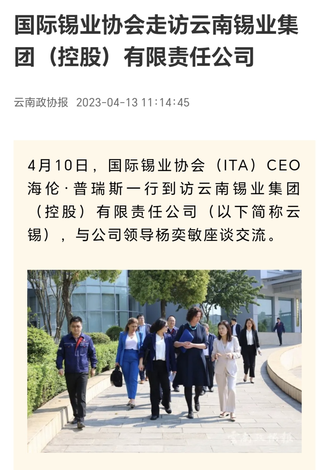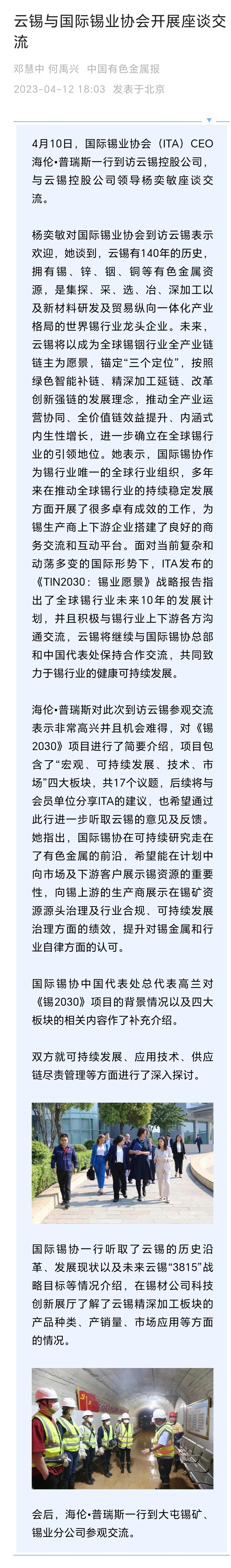 云南政协报、中国有色金属报:云锡与国际锡业协会开展座谈交流