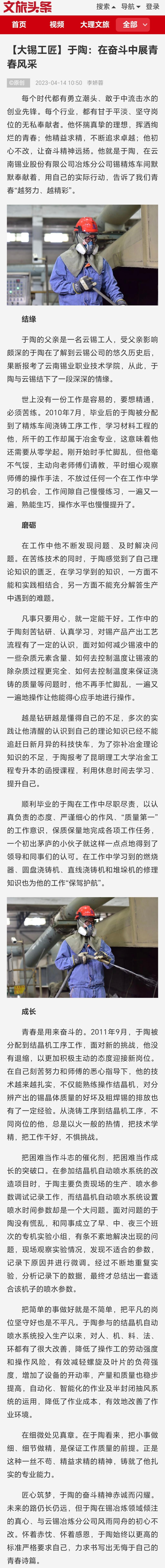 文旅头条:【大锡工匠】于陶:在奋斗中展青春风采