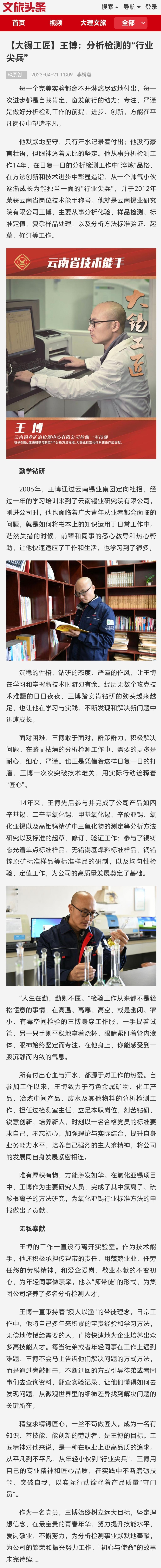 文旅头条:【大锡工匠】王博:分析检测的“行业尖兵”