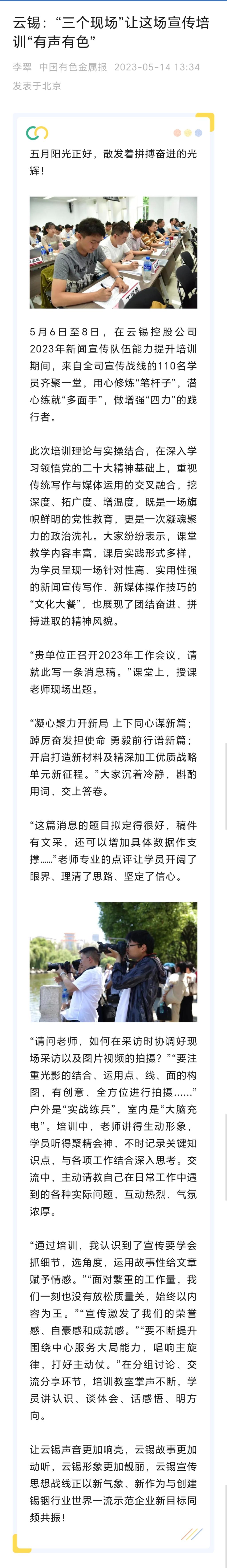中国有色金属报:云锡“三个现场”让这场宣传培训“有声有色”