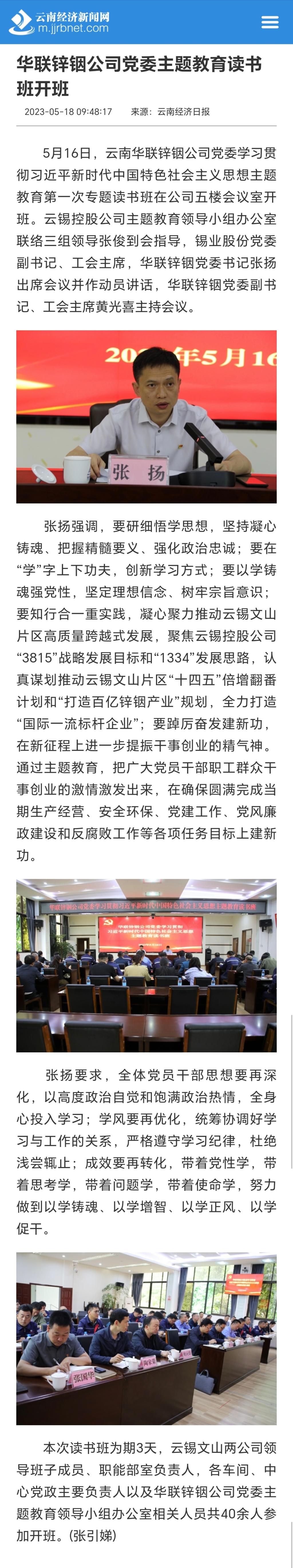 云南经济日报:华联锌铟公司党委主题教育读书班开班